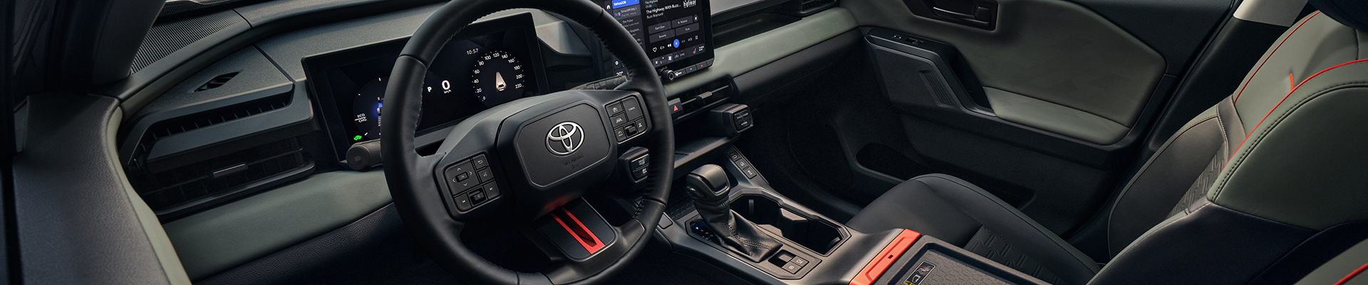 The all-new 2026 Toyota RAV4 introduces a completely redesigned interior focused on clarity, technology, and everyday usability. A wider, more horizontal dashboard layout improves visibility, while updated materials and finishes give the cabin a noticeably more premium feel. Controls are intentionally placed to reduce distraction, creating a space that feels modern, functional, and easy to live with.